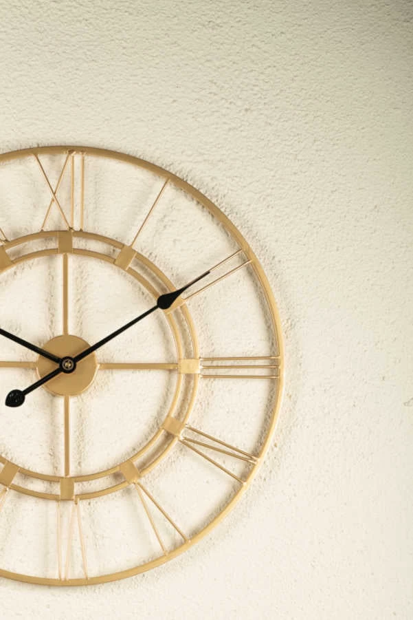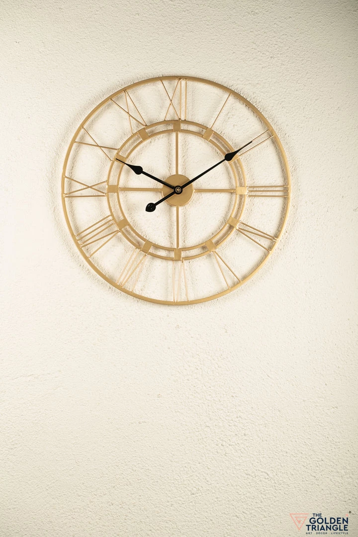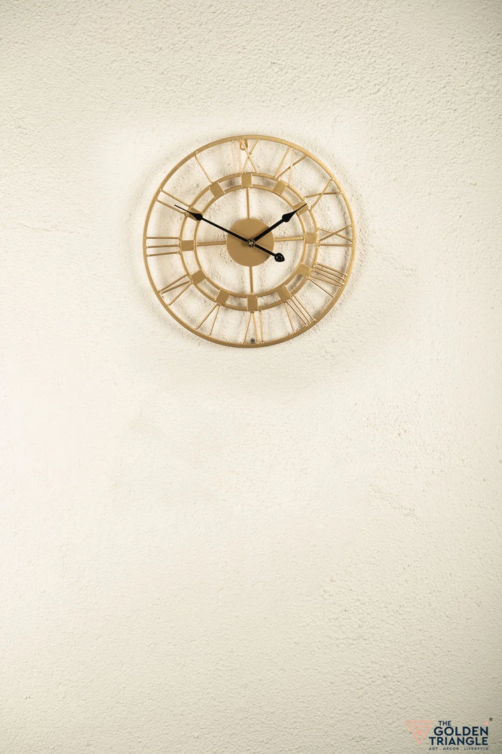 Transform an open and plain wall into a timeless focal point with this wall clock. A versatile addition that lends charm to any room. Crafted in metal, this piece features a metal ring and romans that bring classic appeal to your living room or bedroom. This open faced design is perfect for making a statement without overwhelming your arrangement.