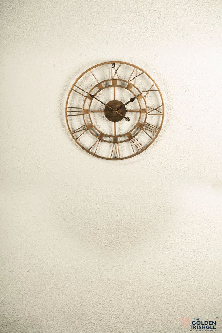 Transform an open and plain wall into a timeless focal point with this wall clock. A versatile addition that lends charm to any room. Crafted in metal, this piece features inner and outer rings connected by Roman numerals that bring classic appeal to your living room or bedroom. This open faced design is perfect for making a statement without overwhelming your arrangement.