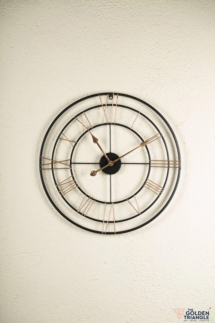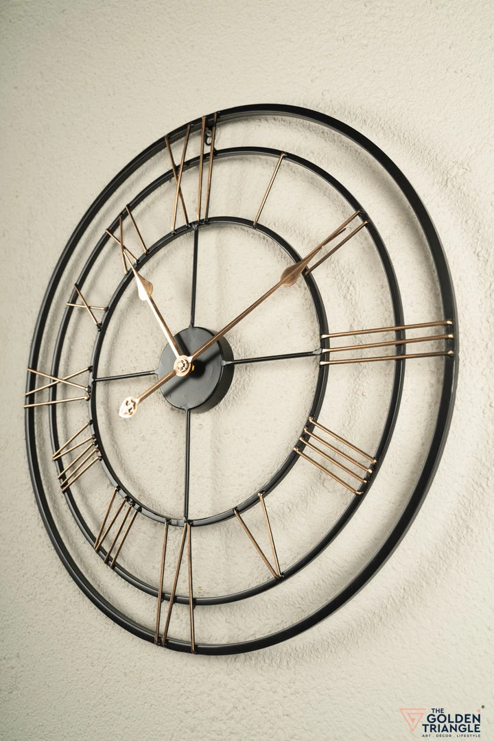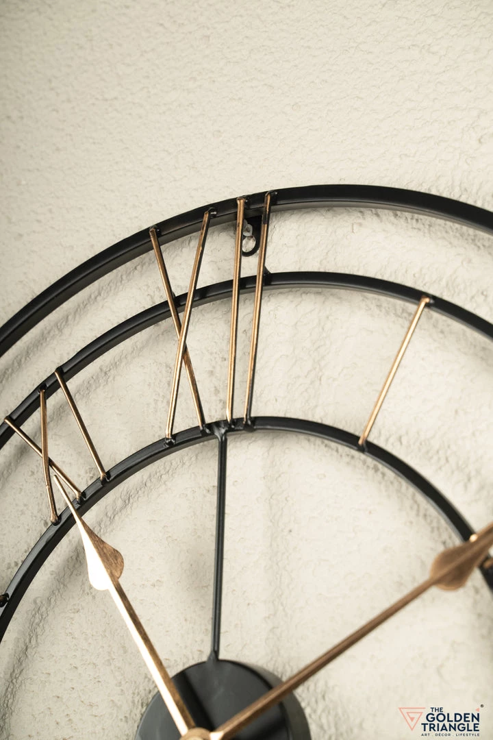 Transform an open and plain wall into a timeless focal point with this wall clock. A versatile addition that lends charm to any room. Crafted in metal, this piece features a metal ring and romans that bring classic appeal to your living room or bedroom. This open faced design is perfect for making a statement without overwhelming your arrangement.